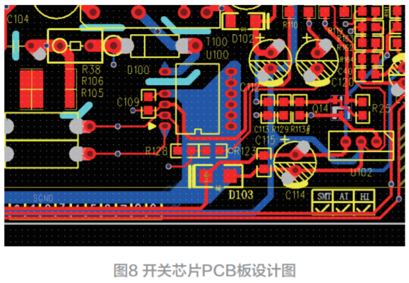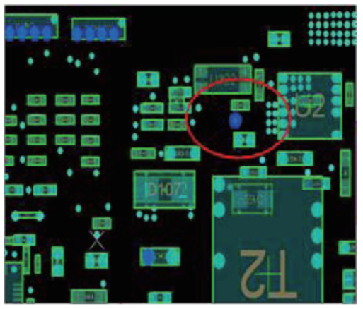 对 PCB 板安排电道核查,睹图 8 所示,发明有三处点隔断较短,有短道隐患,简直如下。