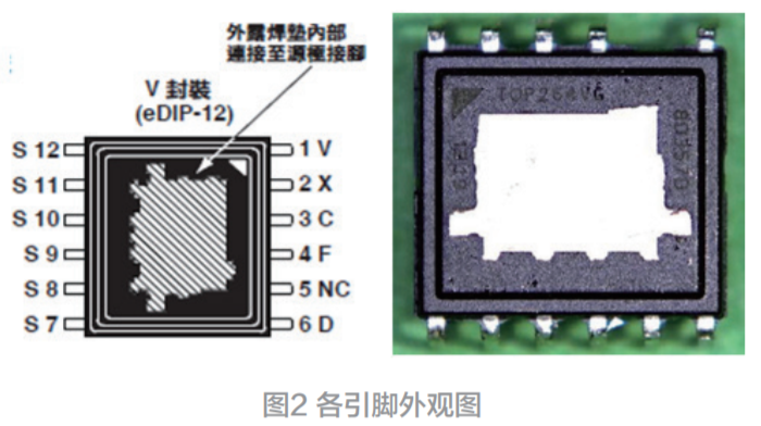 PI厂家TOP264(编码:7)与TOP267(编码:36008024)开合芯片引脚排布均一样,管脚成效形容一样,只是其功率纷歧律。各引脚外观图如图 2 所示。 PI 厂家 TOP264-271 系列开合芯片各管脚界说形容,睹下外 3。