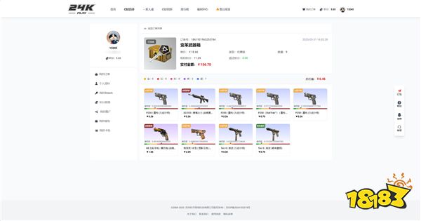 第七步:用户正在24kplay平台“我的订单”获取开箱结果,提取饰品,结束订单