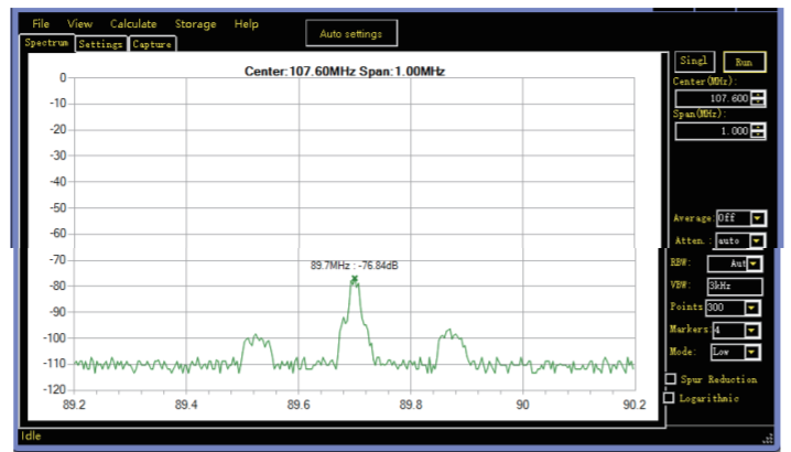 频谱图比拟,89.7 MHz 为含 CDR 的数模同播发射机汲取频谱,107.6 MHz 为通俗模仿发射机。