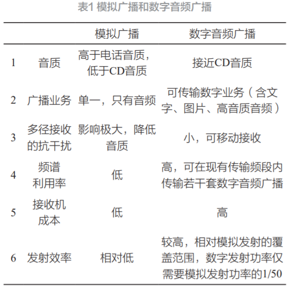 数字音频播送是从古代模仿制式向今世数字化通讯播送身手演变而展现的一种播送身手,是以数字身手为底子,采用进步的音频数字编码、数据压缩、纠错编码以及数字调制、传输身手,对播送信号举办全部数字化管制的播送体系。比拟古代的模仿身手播送,正在现有同样的频率资源下,数字播送身手能够供给实质更众、形状更充足的营业,并且任事质料和用户感触也将有更大的晋升。两者区别睹外 1。