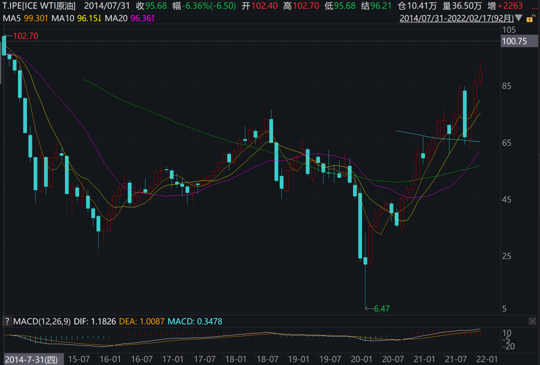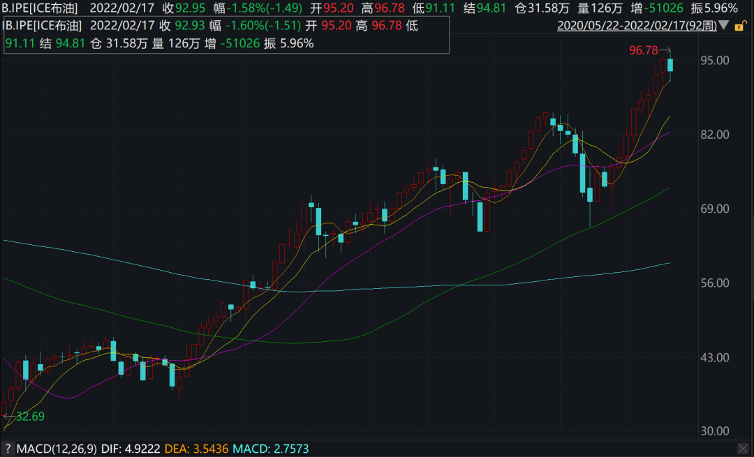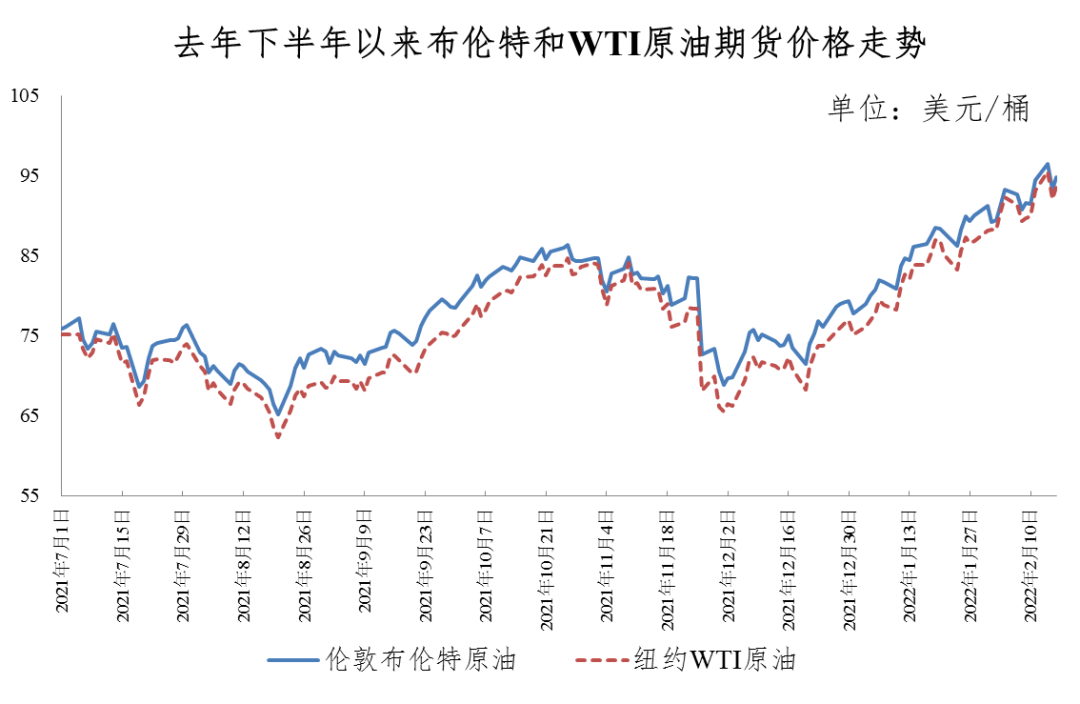 邦际油价从2021年12月底起源接连上涨,春节时候支撑高位运转,纽约商品业务所轻质原油期货价钱从2021年中的每桶62美元独揽上涨到2月最高的突出每桶93美元。美邦银行发外叙述预测,跟着众邦大众旅游需求的反弹,邦际油价的上涨态势恐怕会接连到本年年中,届时布伦特原油价钱或将到达每桶120美元。