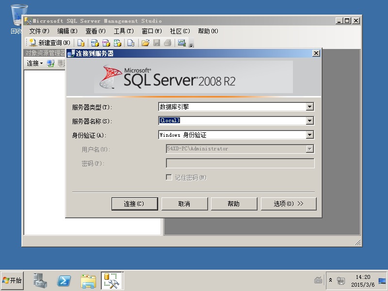 3、通过“Windows 身份验证”或“SQL Server 身份验证”体例连合到数据库引擎;