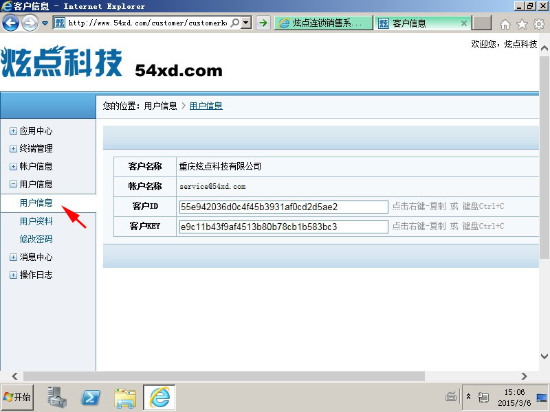 即使您仍旧具有炫点科技账户,则直接上岸炫点科技的官方网站:获取客户 ID 和 客户 Key 填入;
