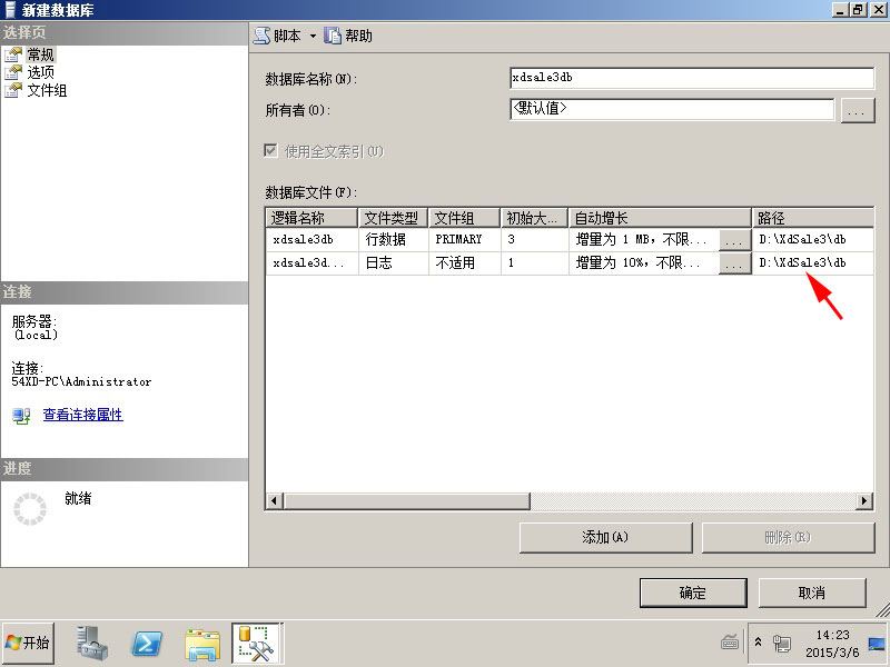 5、正在新筑数据库对话框中填入“数据库名称”,并抉择起初竖立的数据存储目次,单击“确定”然后装置炫点连锁贩卖治理体系;