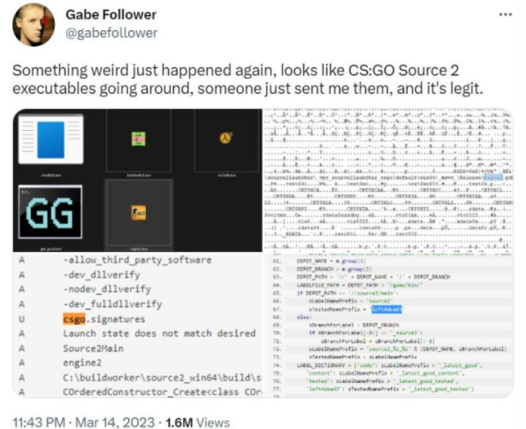 另外,另一位知恋人士Gabe Follower也示意他收到了泉源2版CS:GO启动文献的合联音信。