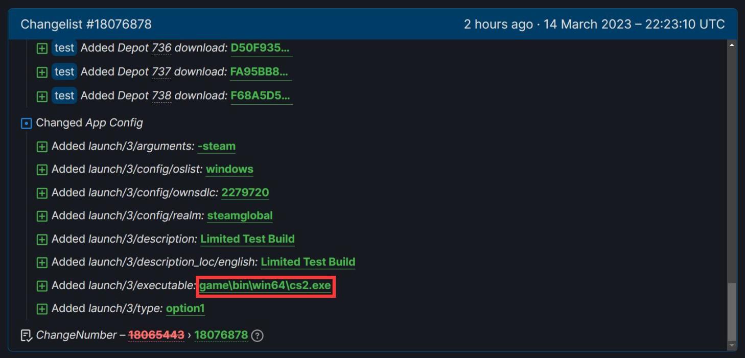 上周,网上合于CSGO2的动静闹得沸沸扬扬,而正在即日,V社更新了《CSGO》后台数据,个中增添了名为“cs2.exe”文献音信。
