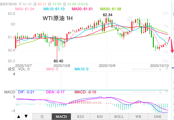 原油盘中MACD指标快慢线下穿张口向下周四亚洲往还时段,西德克萨斯中质原油 (WTI) 价钱约为 61.70 美元。因为原油库存增幅超过预期,WTI 价钱小幅下跌。